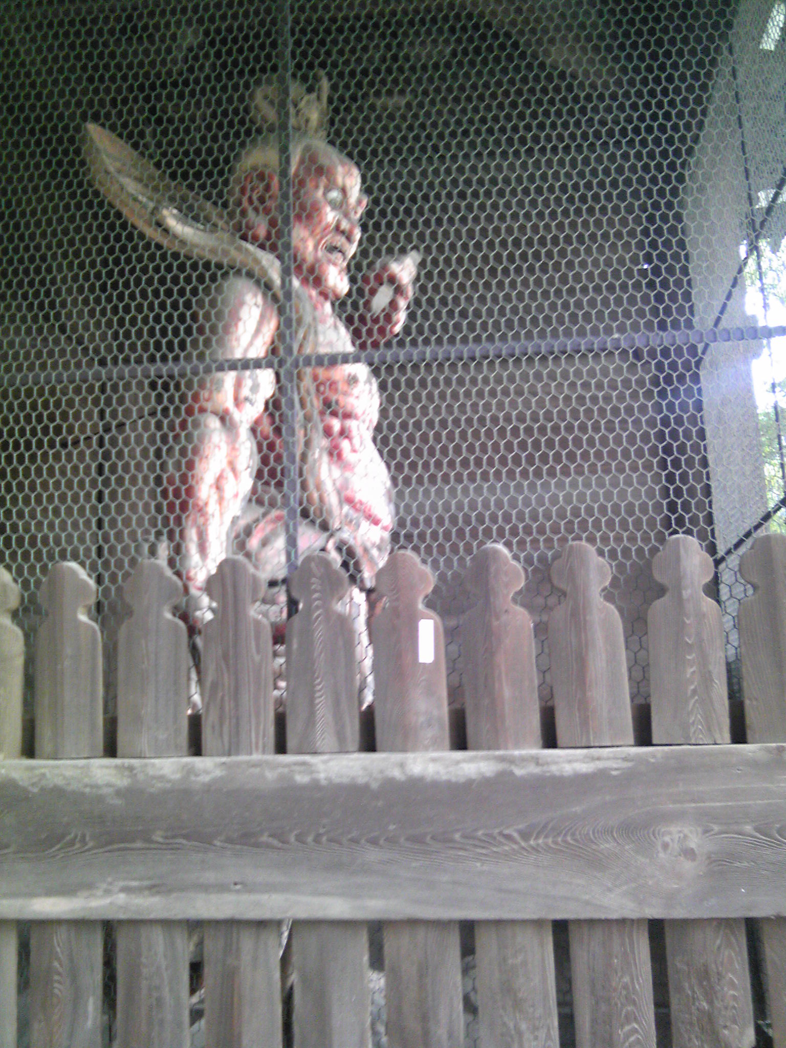 写真の鳩は木彫りの彫像です。